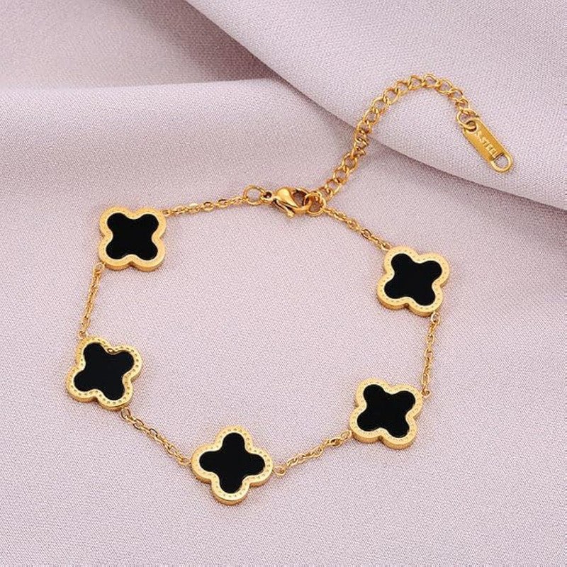 Stainless Steel Anti Tarnish Clover Mother of Pearl Link Bracelet